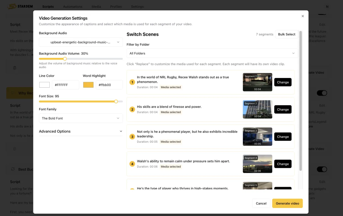 Nope. The entire process from B-roll selection to captioning and audio syncing is fully automated. No editing software or experience needed.